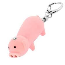 I have this key chain piggie that I carry with me sometimes. It doesn’t look quite like the one pictured about, but the effect is the same. You press a small button on piggie’s head and light comes out his snout. Or her snout. It could go either way on this little piggie.