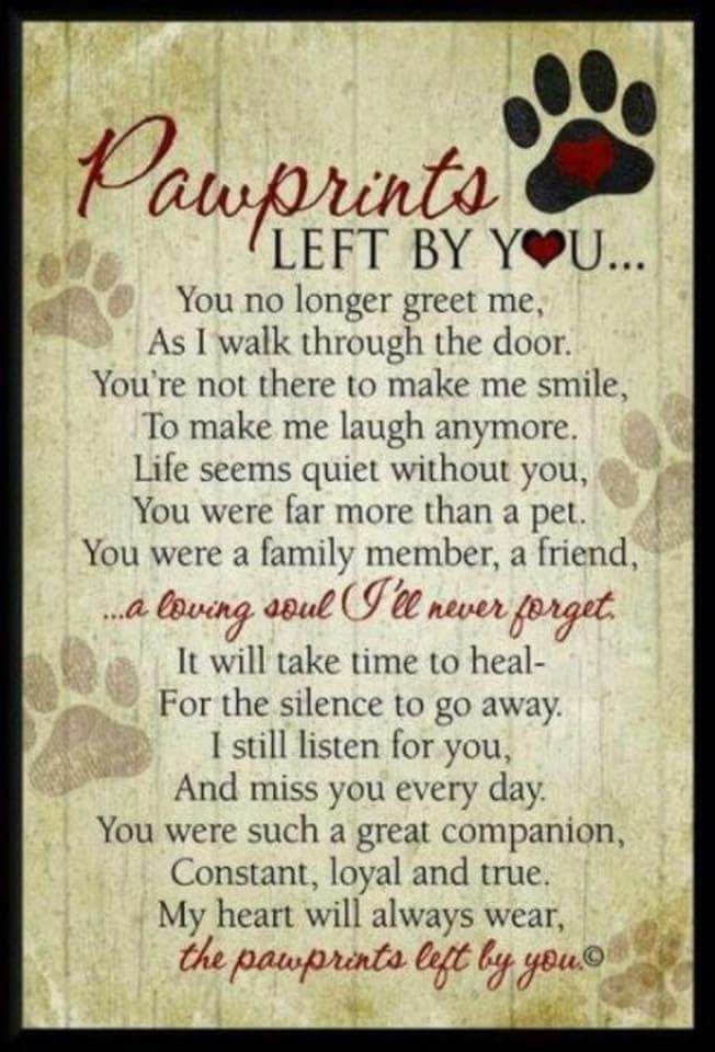 Even though my heart is healing, I will always miss you and carry those paw prints left by you.