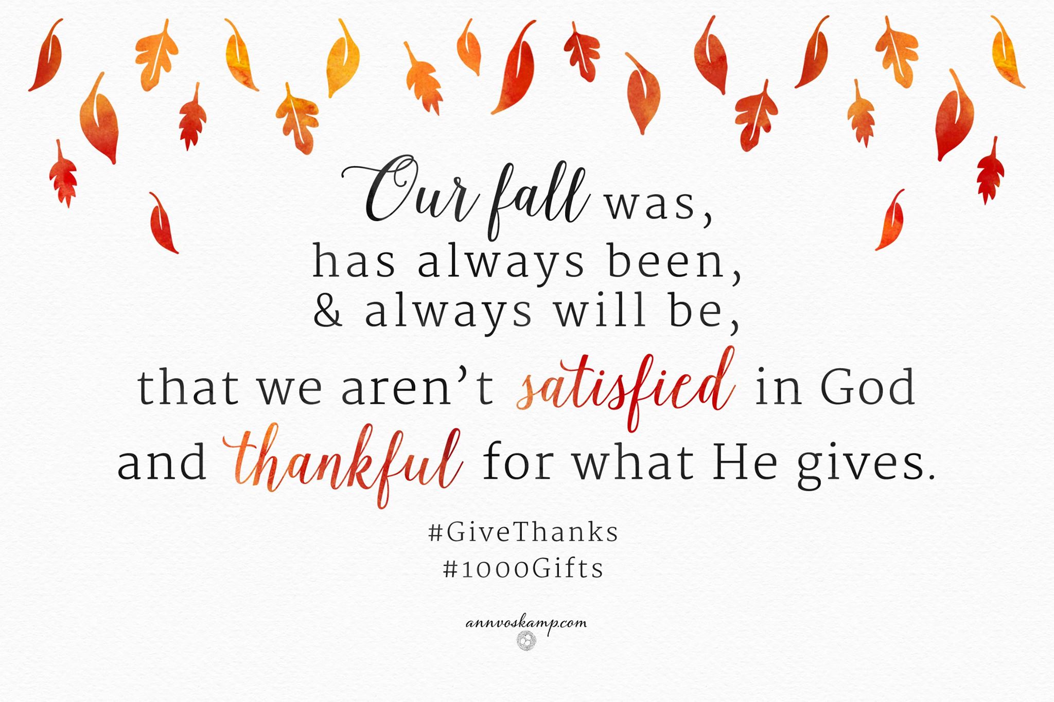 Thanksgiving says that God and His gifts are sufficient for satisfaction and contentment.