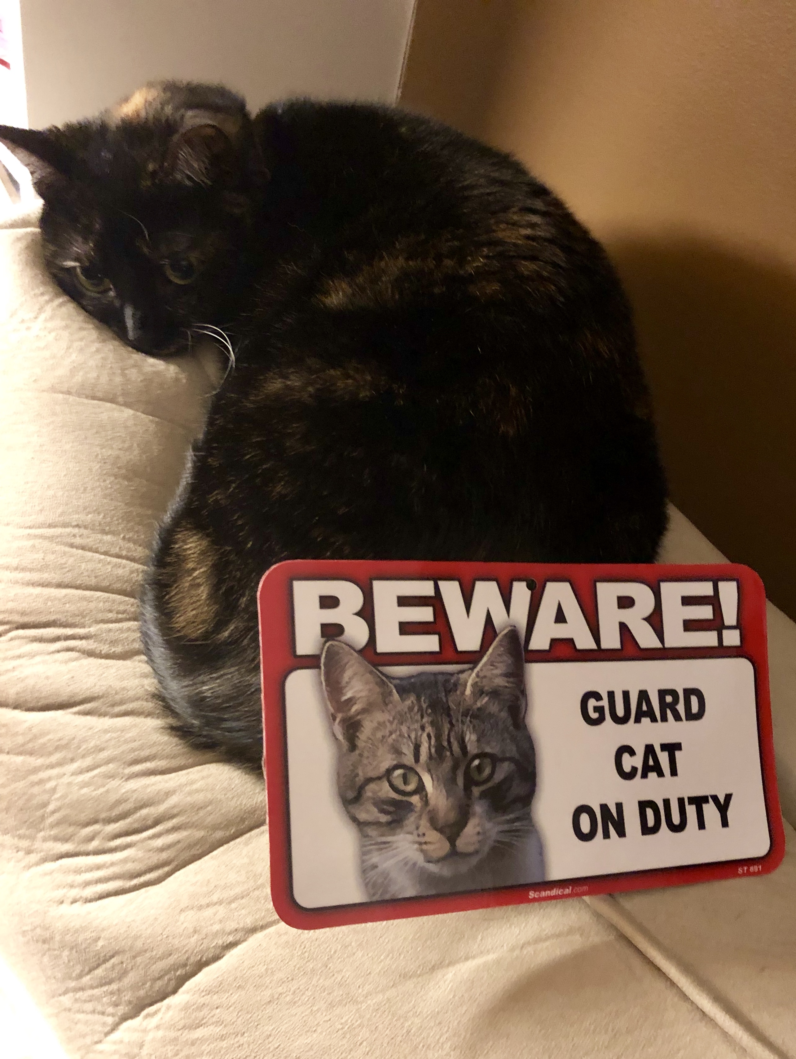 She doesn’t have a single mean bone in her 12-pound body. She’d rather nap than fight. If an intruder actually broke in, she’d probably hide underneath the bed until he was gone.