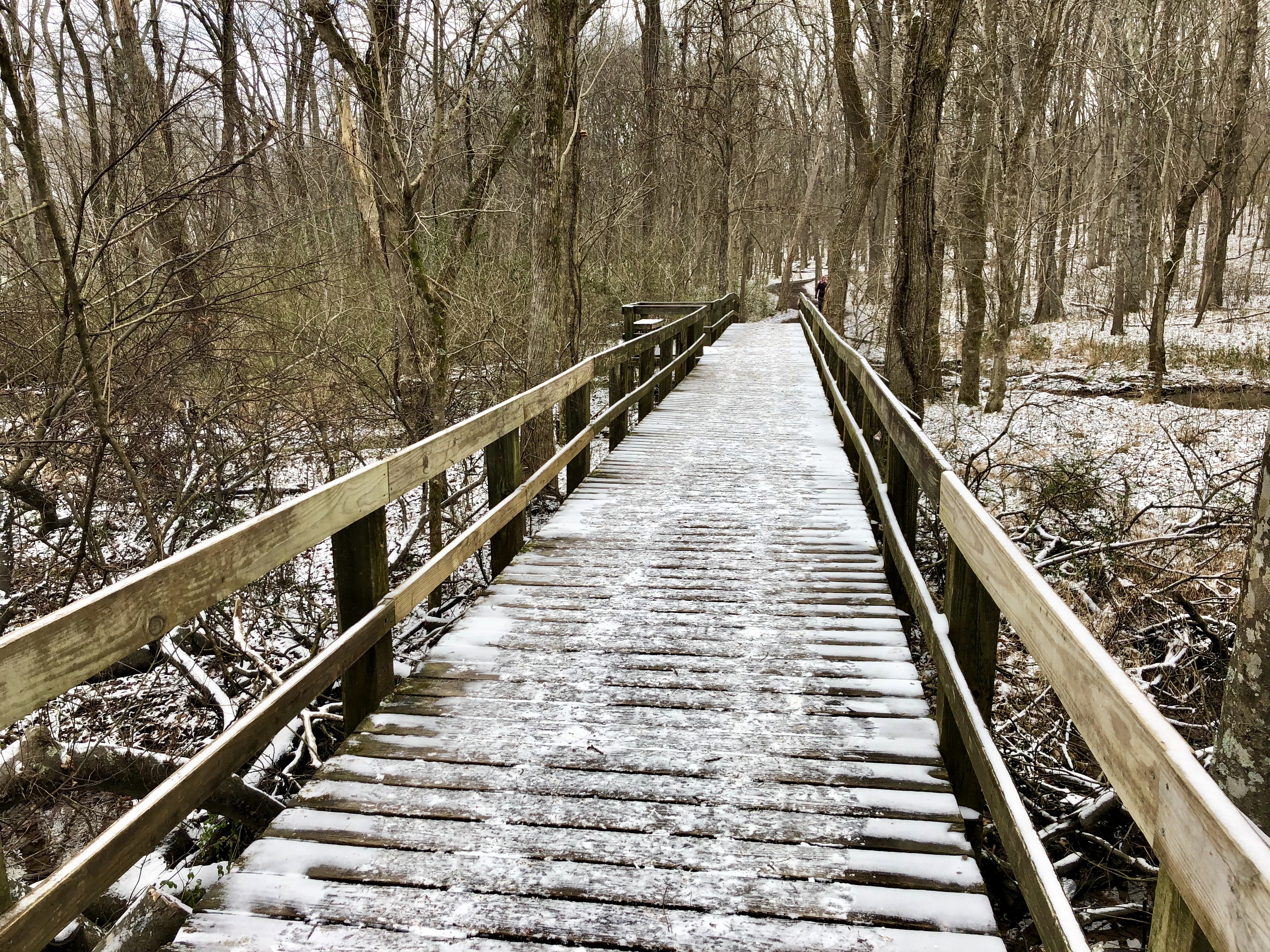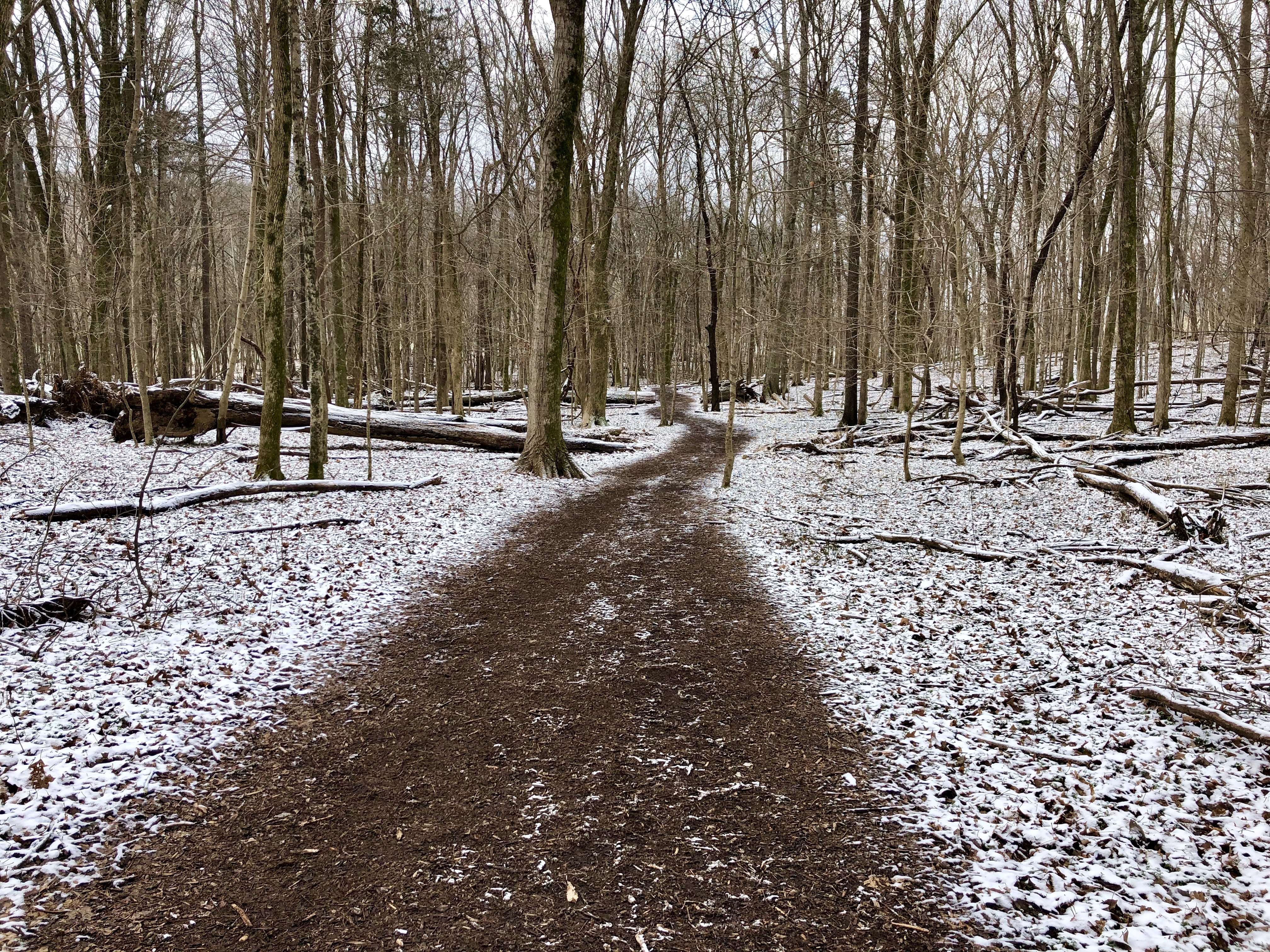 I got out my smart phone to snap a few pictures to remember this one day when I hiked in the snow. I even saw a squirrel and a red cardinal. Plus I got in my 30 minutes of exercise for the day. How is that not a win-win?