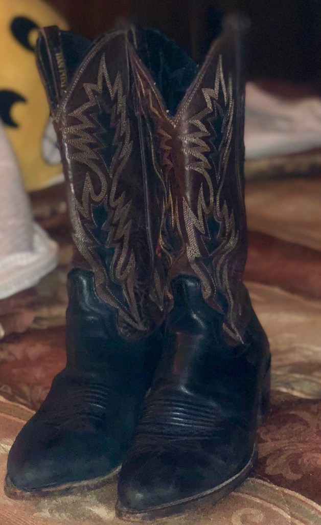 I distinctly remember as a little tyke going over to my grandparents’ house. I remember vividly that my granddaddy had several pairs of boots, and one of my favorite things was to put a pair on and walk around in them.
