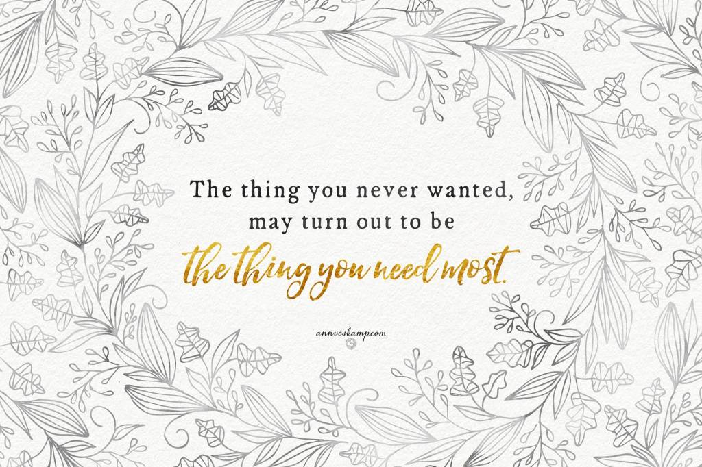 and the thing you never wanted, may turn out to be be the thing you need most.