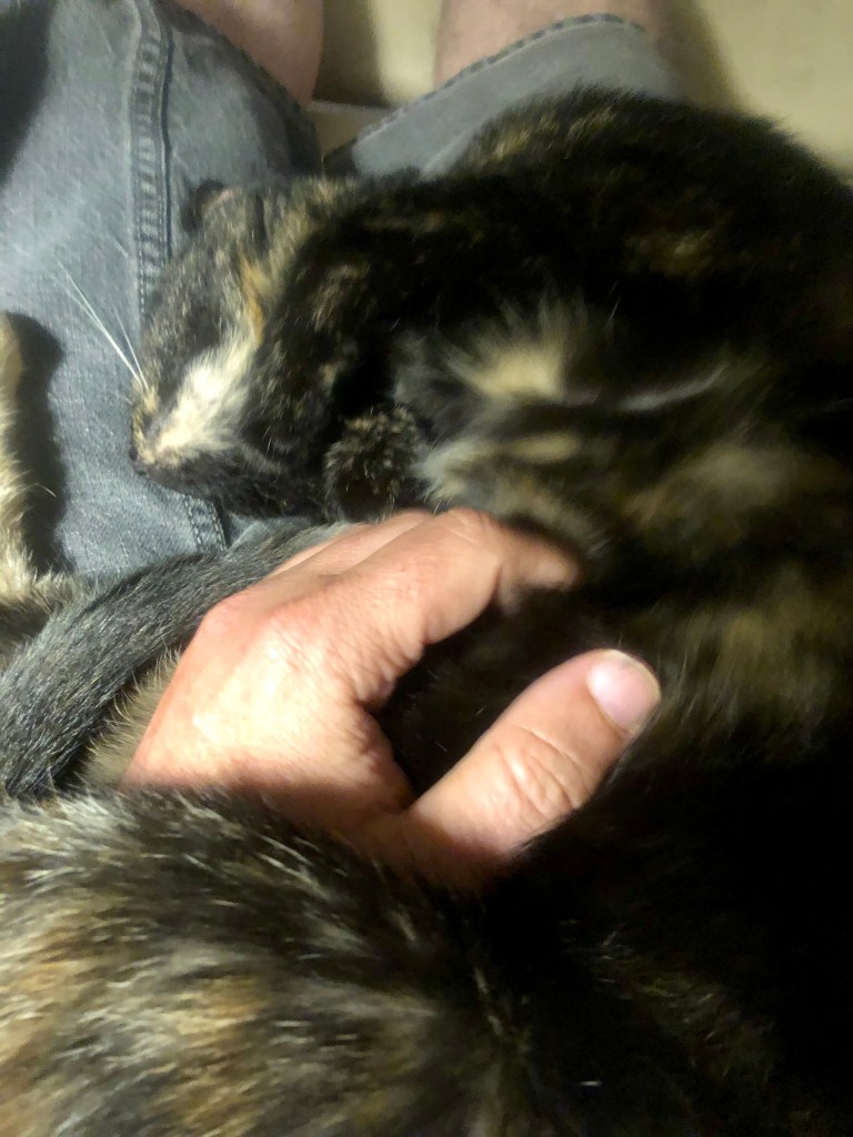 As much as I love going away on vacation, I equally love coming home to my little tortie furball. This time, she seems more grateful than ever to have me home for a while. She’s been more affectionate and cuddly than usual.