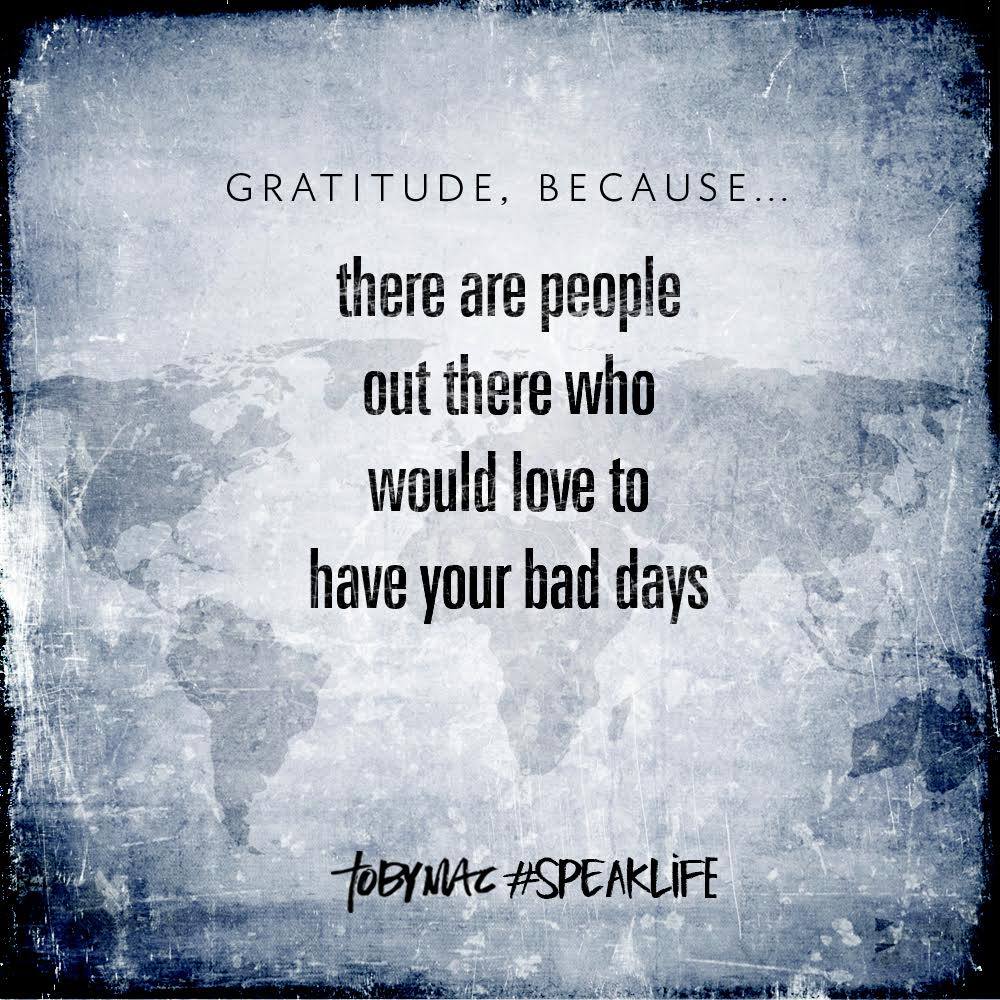 My bad days are better than a lot of people’s good days. In fact, there are lots of people who dream about having a day as good as one of my “bad” days because they get clean water, food, shelter, clothing, security, and life.
