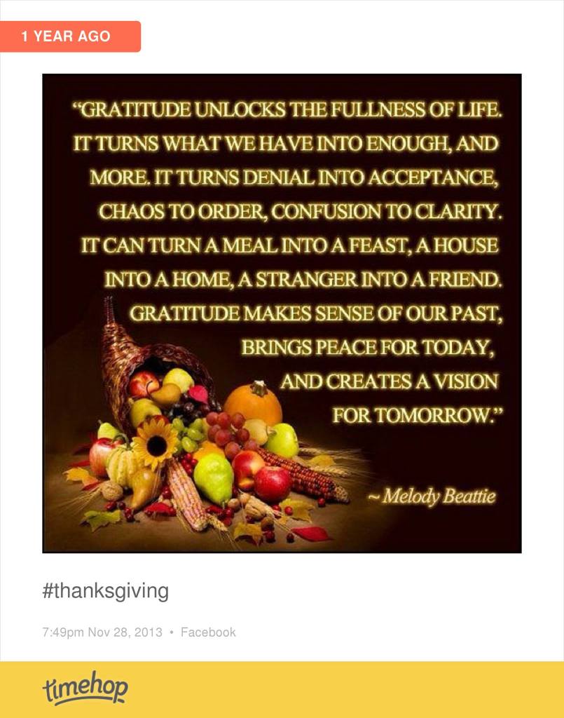 So Happy Gratitude Day. May we be known as a thankful people as opposed to an entitled people or a complaining people. Give thanks on this day of all days for the incredible gift of life.