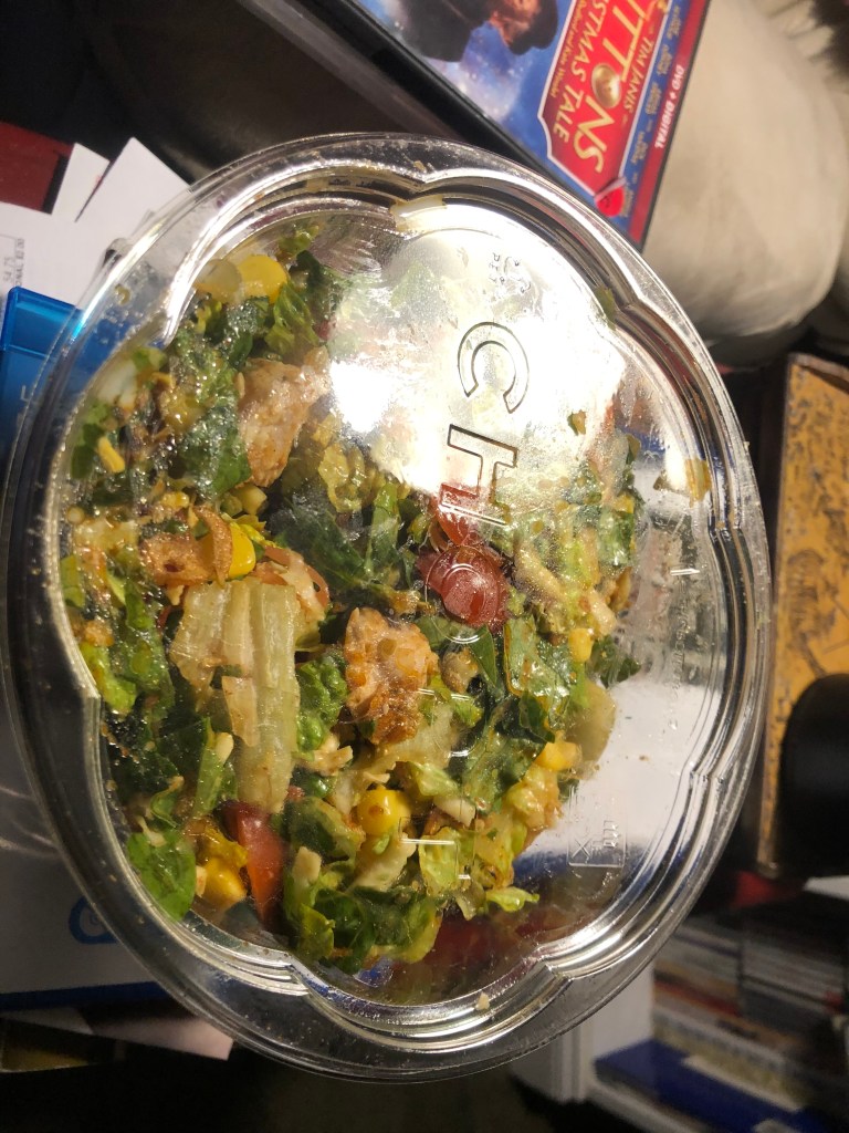 So I bring you a picture of the salad I had for dinner recently. It was very good. And in case you’re wondering, it came from Chopt. You’re welcome.