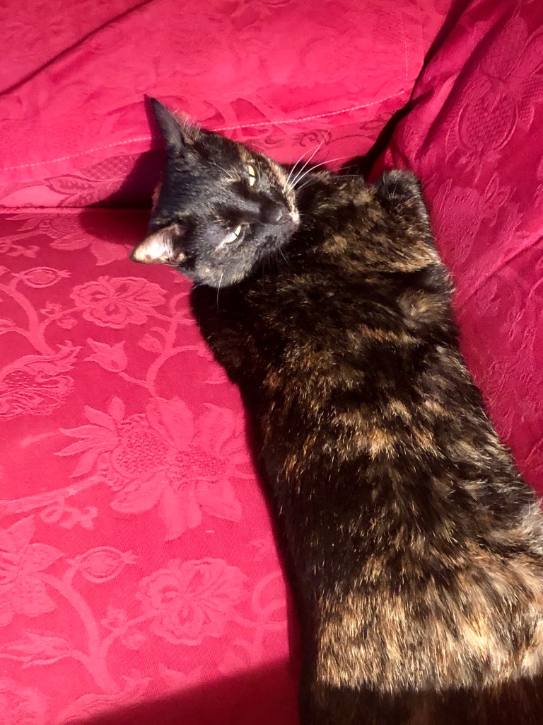 While Lucy was a social butterfly, this little gal’s as shy as they come. She does a lot of hiding when company comes over. She’ll only show herself for a very select few. I wonder if that’s based on some vague memory of some traumatic event from kittenhood (she was a rescue).