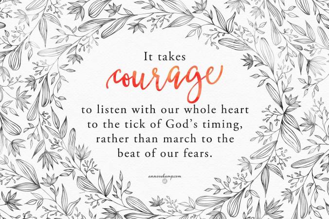 It takes courage to listen with our whole heart to the tick of God’s timing, rather than march to the loud beat of our fears.