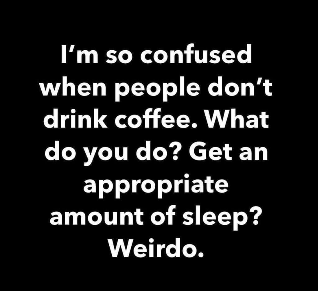 Now I’m one of “those people” who look at people who don’t drink coffee as weirdos. Do they really get the recommended daily amount of sleep? How does that even happen?