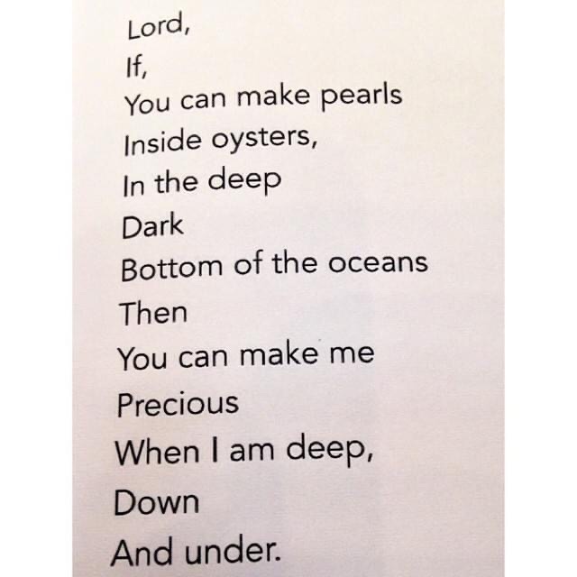 Remember that pearls come from deep dark places. Remember also that it takes a bit of irritation inside an oyster to produce a pearl.