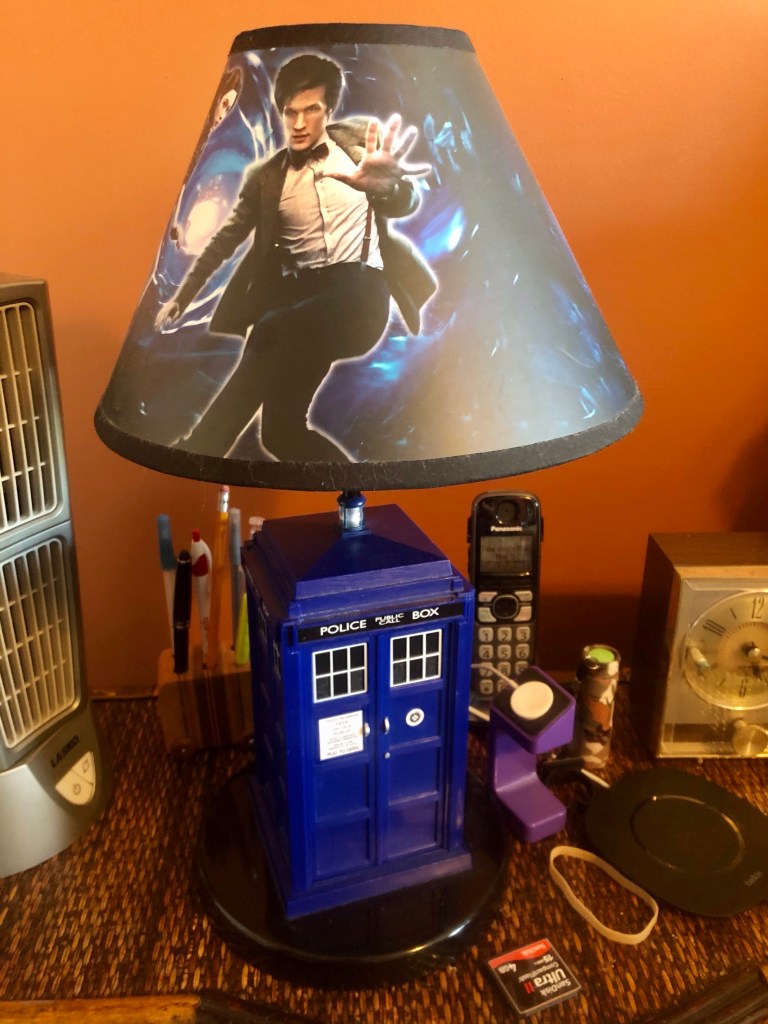 Sometimes, thrifting can be very rewarding. Today, for instance, I went to Goodwill and found this Doctor Who lamp, complete with light bulb, working doors, and sound effects, for only $5.