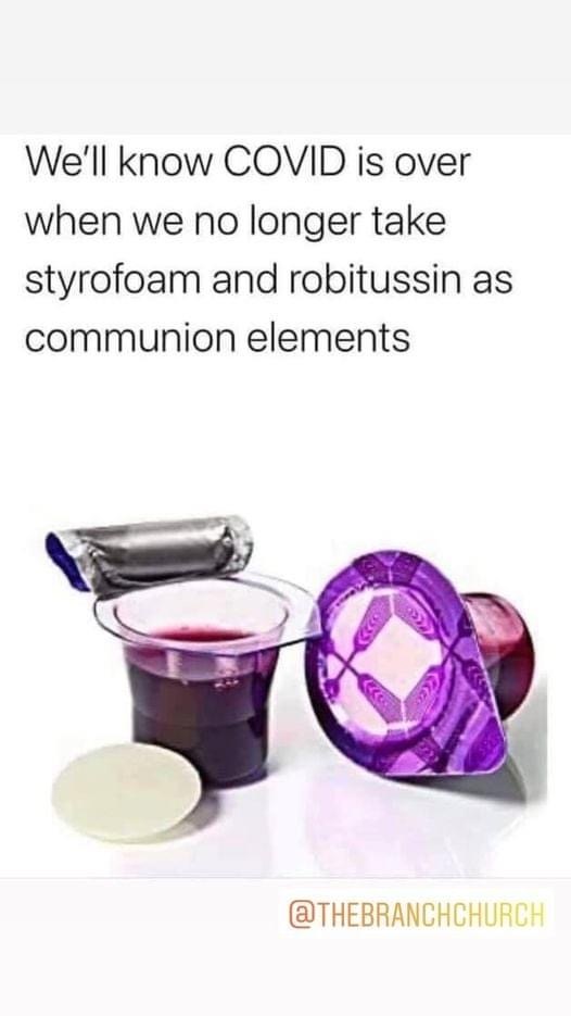 Just yes. I’m ready for the regular Baptist communion elements. I’m ready to go forward with other people and receive the elements and hear the words “The Body of Christ broken for you” and “The Blood of Christ shed for you.”