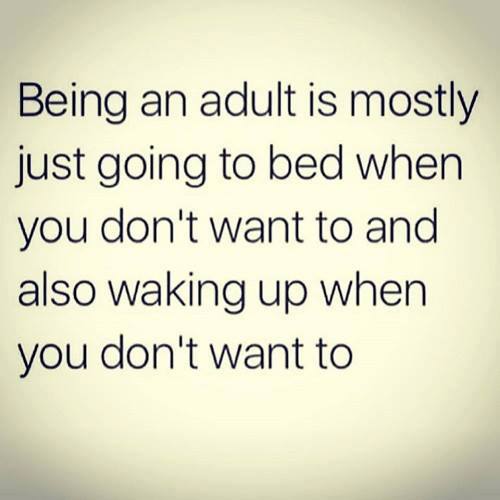 I also feel like adulting is highly overrated. It really does mean going to bed when you don’t want to and getting up when you don’t want to. It means wondering why certain body parts hurt and getting super excited over bargain prices on toothpaste.