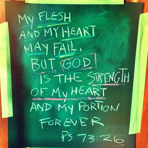 My hope isn’t in my own faith. It’s not in my goodness or my faithfulness or my generosity or the size of my heart toward others. It’s in the God who is the strength of my heart and my portion forever, the One who sustains and guides and renews me. The One who is my righteousness and my goodness and my intercessor and my hope forever.
