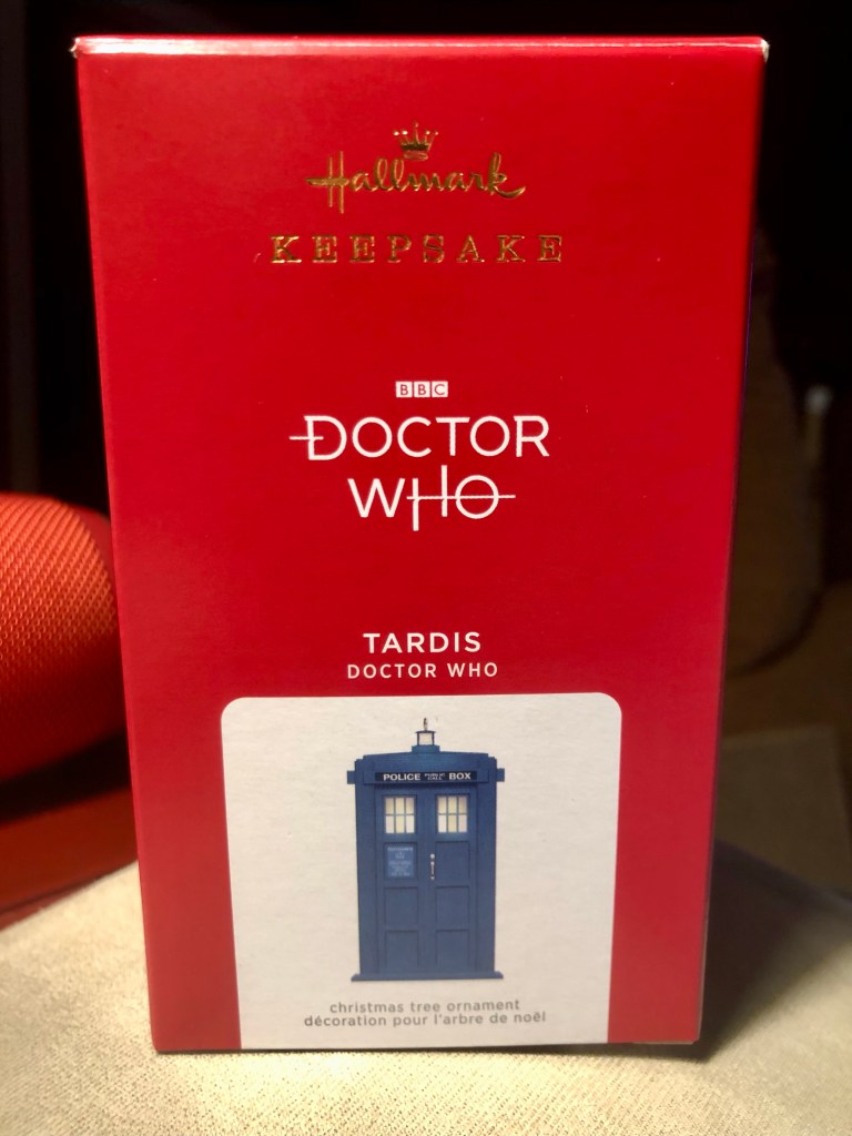 The latest is a Doctor Who Tardis ornament. I actually broke with tradition and bought it BEFORE it went on sale. That’s right. I actually purchased a Hallmark ornament before December 25. I knew if I waited, they’d be gone. As it turns out, I got the very last one.