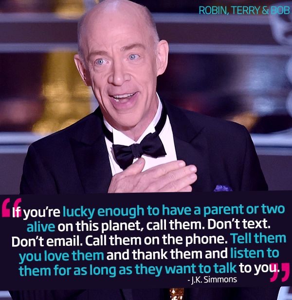 But if you were blessed enough to have a parent or both parents who cared for you, let them know. Call them on the phone. Go and visit them. Don’t assume that they know how much they mean to you. Tell them.