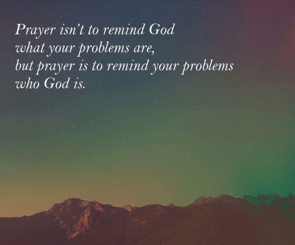 What prayer does is remind your problems of who God is. It’s a reminder to the one praying that prayer still moves mountains. It’s to call our minds throughout history to all the times when God has delivered His people, granting to them in their hour of need what they needed most.