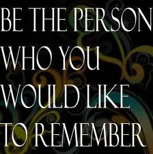 Be the person who you would like to remember. How? You treat them like you would want to be treated. You love them like you want to be loved. You do for them what the people you remember most in a good way did for you.
