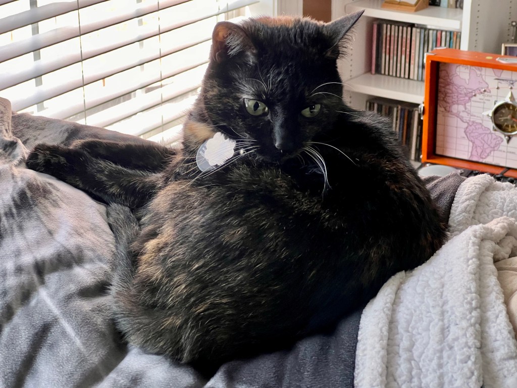 It’s hard to believe that it’s been six years with this furry little tortie in my life. I guess time flies when you have a fun cat, or a cat who likes flies. It seems like yesterday that she picked me to be her furrever human. I’d like to say I chose her, but we all know it was the other way around.