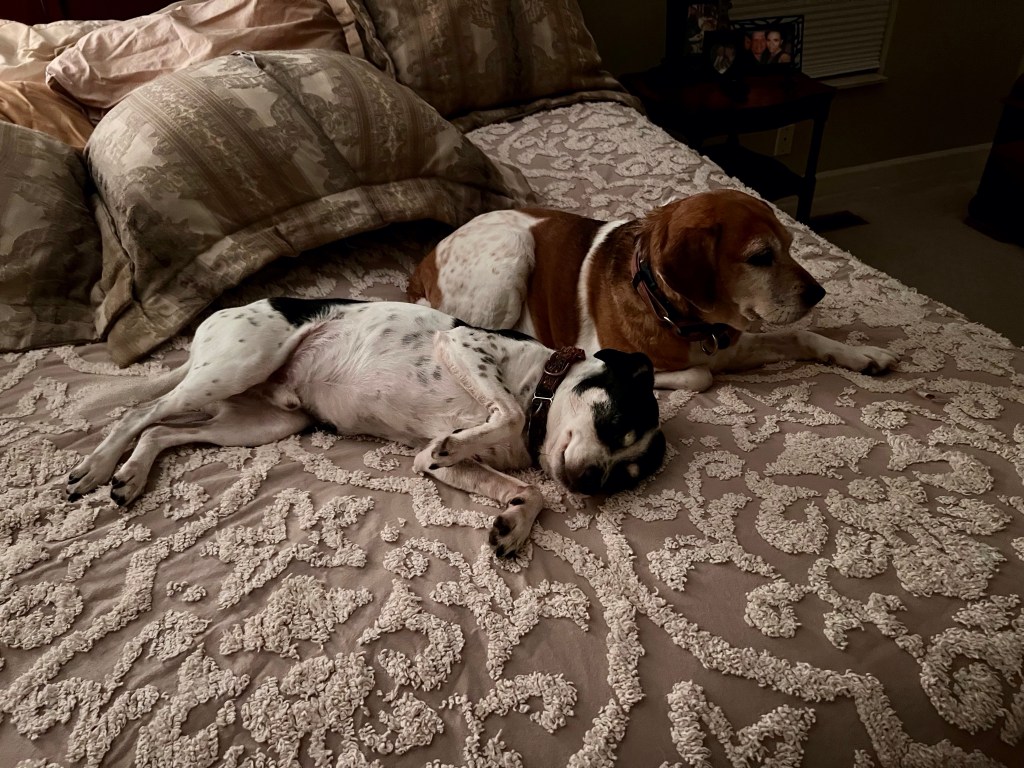So I’m back doing my favorite gig ever — taking care of two lovable pups while their owners are out of town. There were three, but one of them sadly passed away earlier. But I’m thankful to still have the opportunity to look after the two.