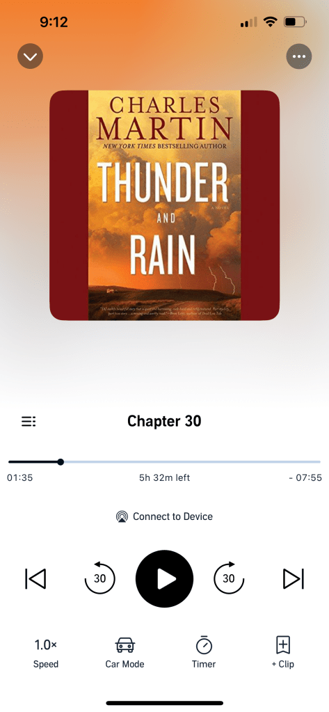 Lately, I’ve been on a Charles Martin binge. I think the book I’m listening to at the moment is his 8th book. I started from the first with The Dead Don’t Dance and have been moving in chronological order through his catalog. Yep, I’m a big ol’ nerd.