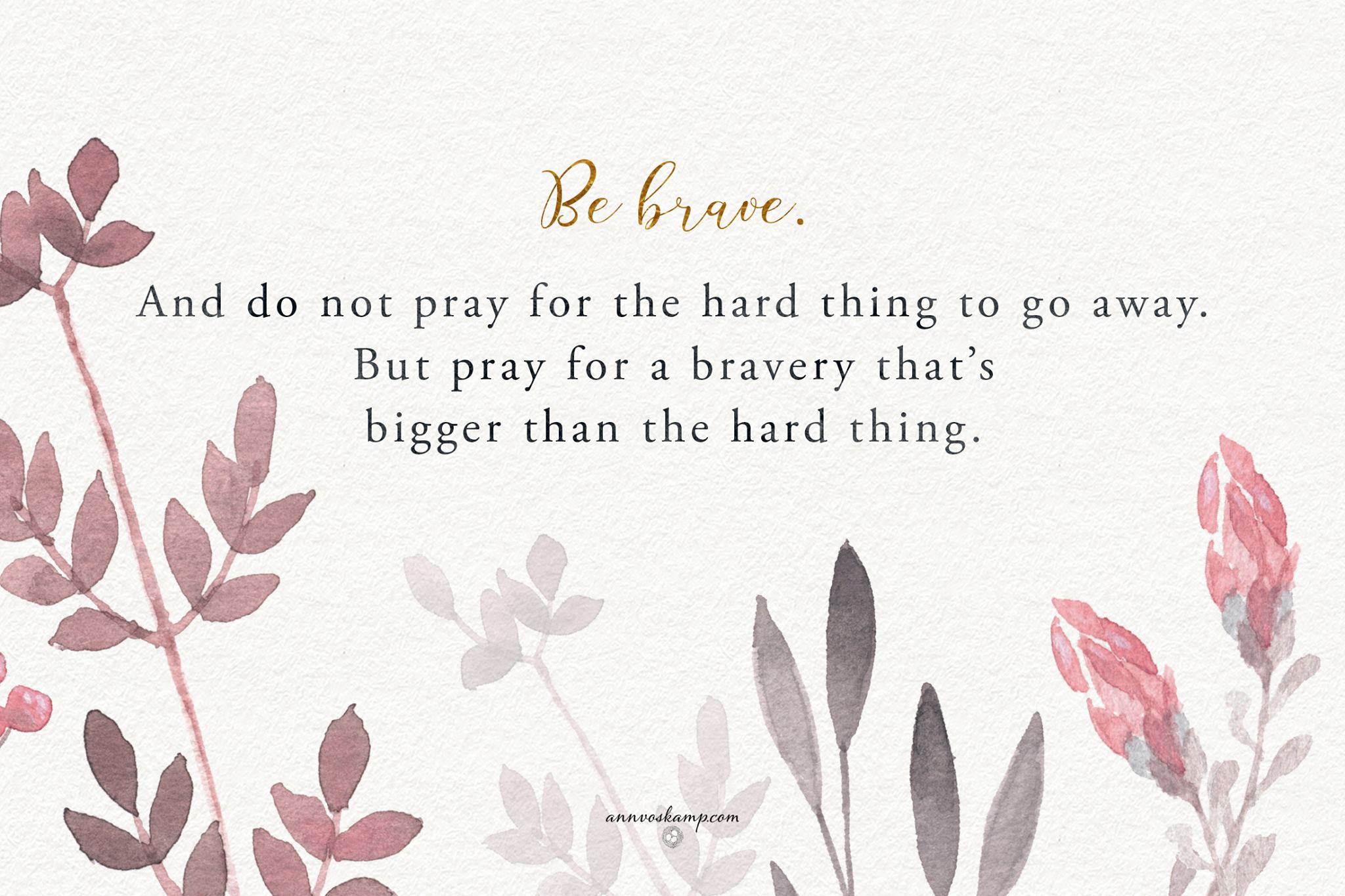 What He said and what He promised is that He would be with us in the middle of the hard things. He promised that if we held on with the faith of a mustard seed, He’d be our Prince of peace and give us peace beyond human understanding. We can be brave because we won’t ever face anything that Jesus hasn’t already overcome on the cross.