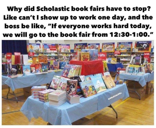 I wish that was an option for where I work currently. Having us take our lunch one day for a trip to the book fair would be epic. Though hopefully this time they take credit cards or Venmo because I almost never have cash.
