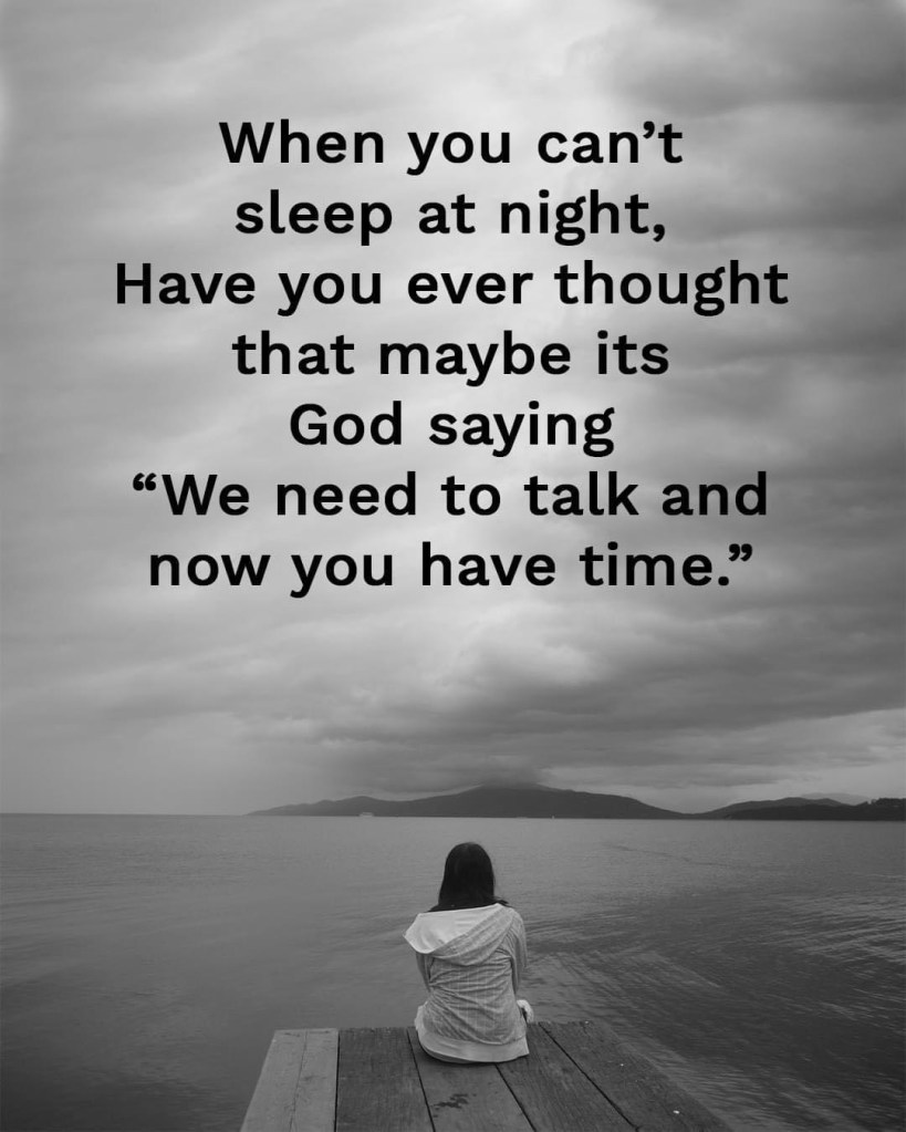 But imagine if those nights are God trying to get your attention. Instead of becoming increasingly annoyed and agitated, try using it as a time for hearing from God at a time when you’re least distracted and have the least amount of stuff going on.
