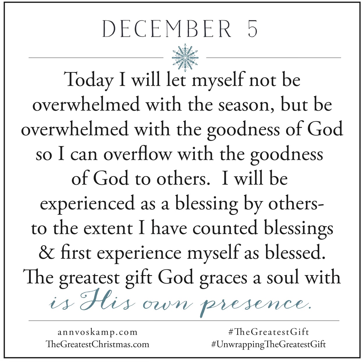 The greatest gift you can give anyone is the gift of Emmanuel, God with us, and you can only give as you have encountered the presence of the risen Christ in your own life. That doesn’t come by rushing around like crazy to all the stores in all the traffic, but by finding margin in your schedule to be alone and be still, savoring the gift of the Christ child.