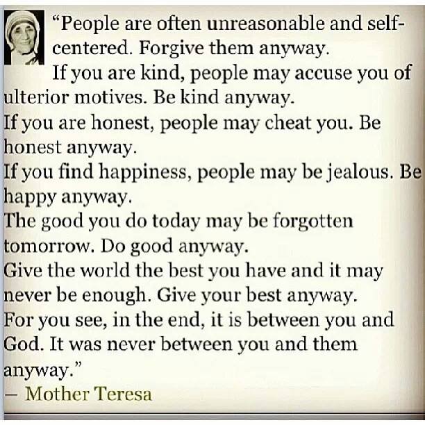 “You’re familiar with the old written law, ‘Love your friend,’ and its unwritten companion, ‘Hate your enemy.’ I’m challenging that. I’m telling you to love your enemies. Let them bring out the best in you, not the worst. When someone gives you a hard time, respond with the supple moves of prayer, for then you are working out of your true selves, your God-created selves. This is what God does. He gives his best—the sun to warm and the rain to nourish—to everyone, regardless: the good and bad, the nice and nasty. If all you do is love the lovable, do you expect a bonus? Anybody can do that. If you simply say hello to those who greet you, do you expect a medal? Any run-of-the-mill sinner does that” (Matthew 5:43-47, The Message).