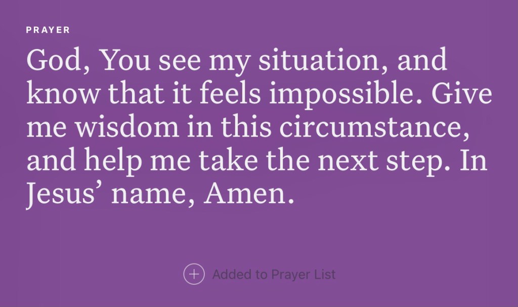 Perhaps, you and I need to stop staring at what we can’t do and start focusing on what God can do. Maybe we need to believe in faith for God’s provision and take the next step. We can start by praying for discernment over what that next step looks like. We can pray for wisdom, claiming the promise that God isn’t stingy in handing out wisdom but gives generously to those who ask.