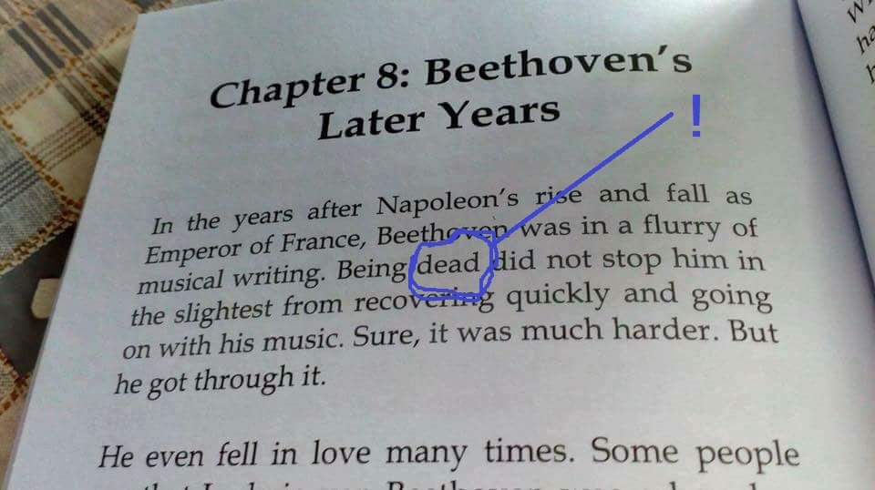 “I’m so tired. I saw a post about this earlier and I couldn’t figure out what was wrong with it and why he was composing after being dead. Deaf, Cortney, it was supposed to be deaf, you ding dong.”