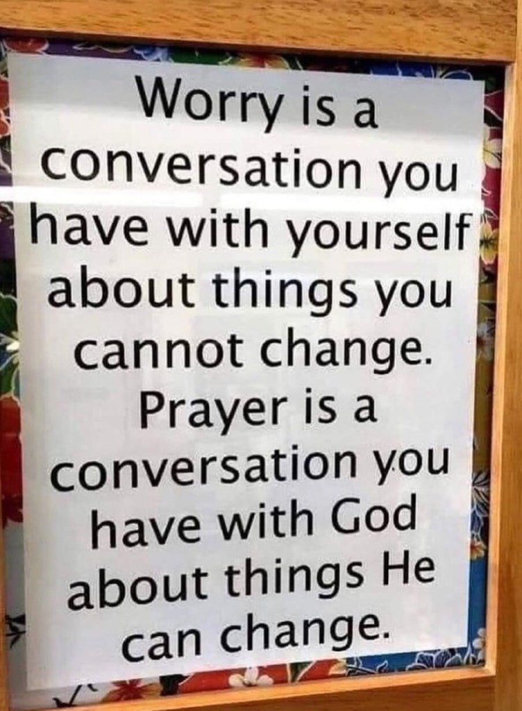 Worry is a conversation you have with yourself that leaves God out of the scenario and never leads anywhere good. Prayer is the only way to deal with anxiety that doesn’t lead to either self-medicating or more anxiety. I think I choose prayer.