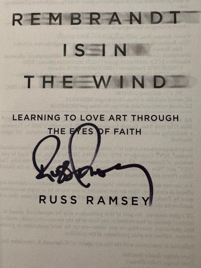 I found a book I’d been wanting to read for a while. It’s called Rembrandt Is in the Wind: Learning to Love Art Through the Eyes of Faith by Russ Ramsey. After I brought it home, I discovered it was autographed.