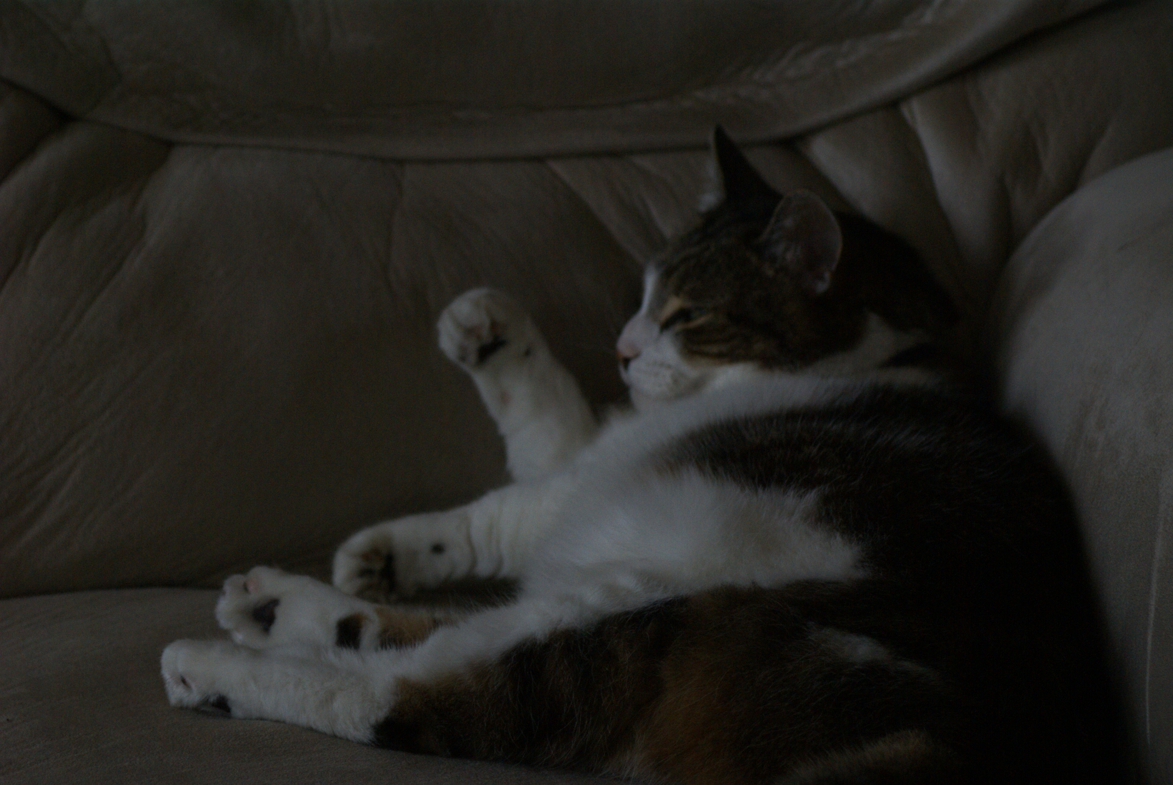 1,569) My very sleepy yet very comforting feline therapist yet again at her job.