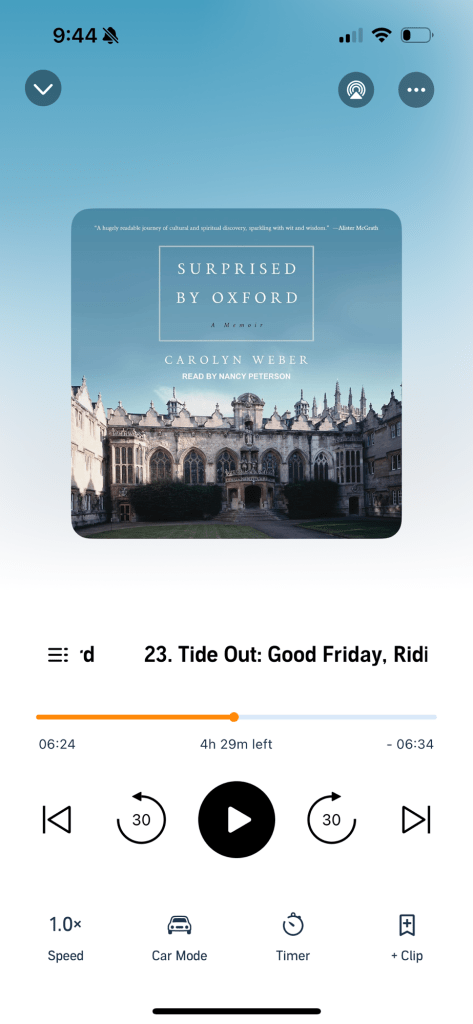 It’s a story about a journey to from unbelief to faith told in a riveting style that reads (or listens) like a novel rather than a memoir. I can visualize just about everything in my head despite never actually having been to Oxford.