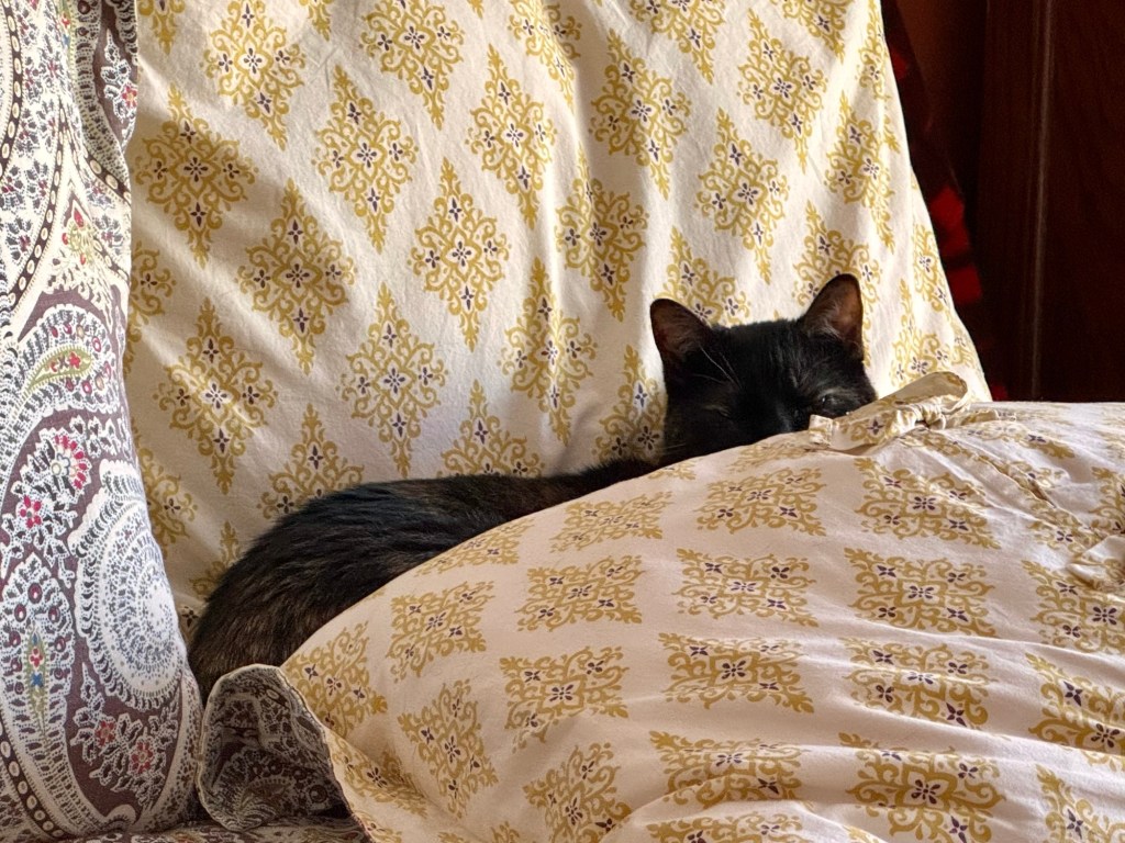 She is a cat, and that means she likes her naps. I’ve joked before about how cats sleep an average of 23 hours and 45 minutes a day. I think she’s not far off. She takes multiple lengthy naps throughout the day and possibly during the night. She might dash madly about the house for a few minutes in what us cat people call a zoomie. But then she goes right into another nap.