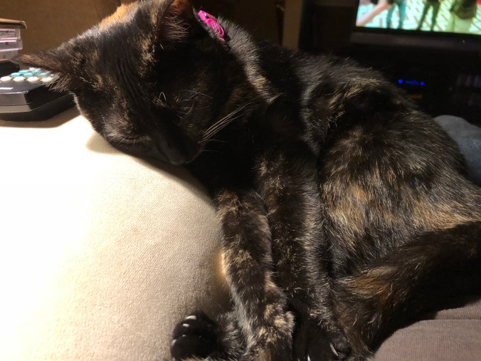 Since that fateful gotcha day, she’s been nothing but loving and sweet and affectionate. She’s the poster child for tortie cats. Or should I say, the poster kitten.